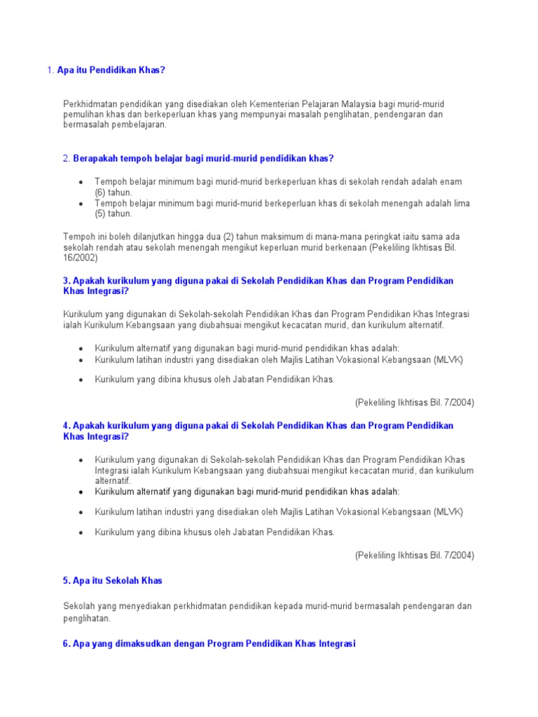 Apa Itu Pendidikan Khas / Tahukah anda apakah yang dimaksudkan pendidikan khas?