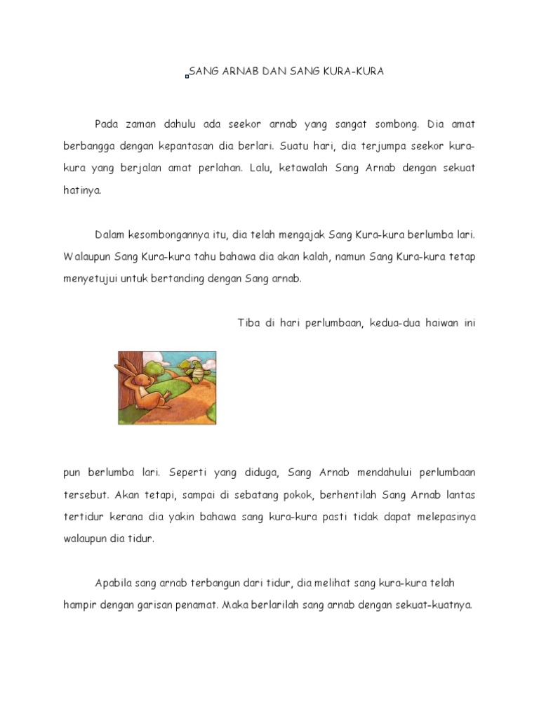 Flashcards in arnab dan kura kura deck (43). A short stop motion animation featuring afiq and luq. posted by unknown at 6:24 am. Posted by nuur aini at 11:07 pm. Hikayat sang kancil dan monyet. Perlumbaan ini akan menentukan siapa lebih pantas. You can create one as well, really easily.get started. Azma shahira binti ahmad ppg/20455/11 wan maszatul laili bt meor rohidi ppg/20452/11 zaitun bt md.rashid ppg/20451/11. Pada zaman dahulu, dipercayai bahawa binatang boleh berhubung antara mereka. Terdapat seekor arnab yang sombong dan bangga dengan kepantasan dirinya. Bila saya rasa selesa dengan 'kejayaan' sedikit, saya akan alpa dan 'tidur'. Cerita arnab yang sombong dan kura kura yang penyabar sebuah filem negara malaysia yang ditayangkan di tv suatu. Add to my workbooks (0) add to google classroom add to microsoft teams share.