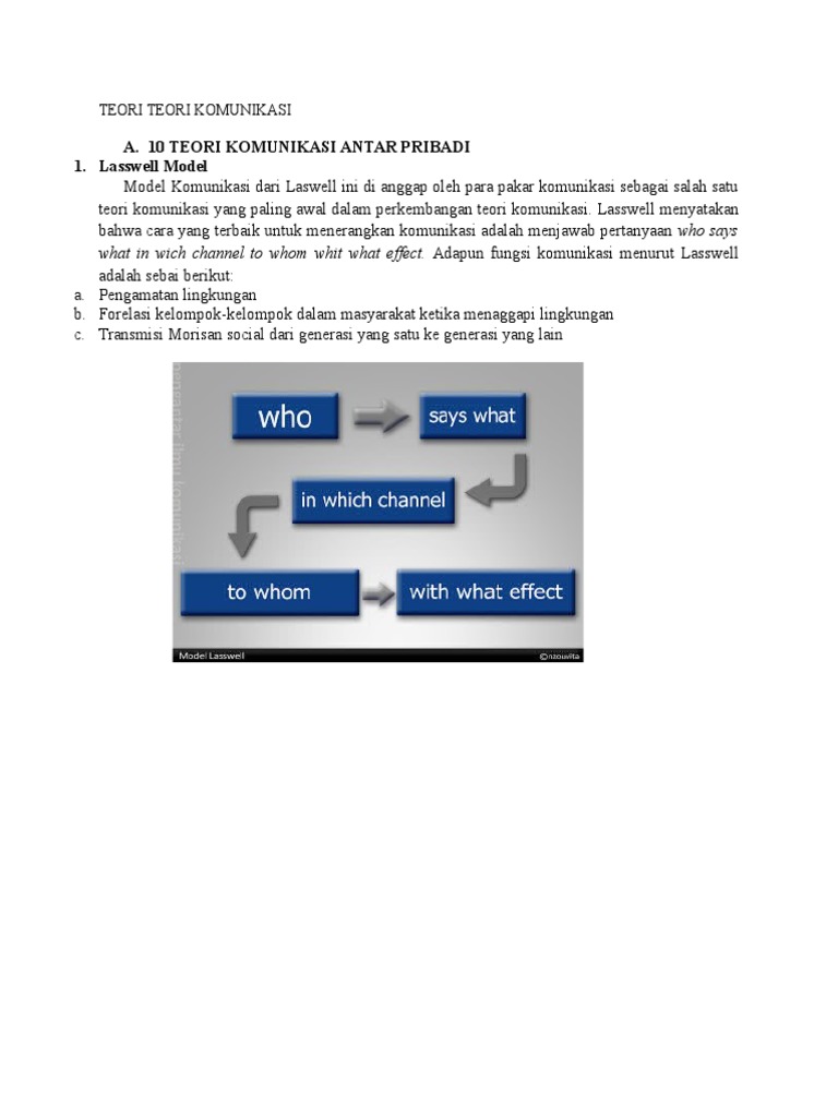 Bahagian ini akan membincangkan empat kepentingan teori komunikasi kepada masyarakat.meningkatkan pengetahuan masyarakat laswell (1949). Everett rogers melihat perkembangan komunikasi politikdan berorientasi kepada kepentingan negara. Teori model lasswell salah satu teoritikus komunikasi massa yang pertama dan paling terkenal adalah harold lasswell, dalam artikel klasiknya tahun 1948 mengemukakan model komunikasi yang sederhana dan sering dikutif banyak orang yakni: Teori konflik mengasumsikan bahwa kepentingan diekspresikan melalui komunikasi. Demi memaksimalkan kinerja serta komunikasi dinassosial kota makassar dalam upaya pemberdayaan masyarakat, maka implikasi penelitian ini adalah: Dalam komunikasi politik, tujuan komunikasi selalu berimpit (bahkan melembaga) dengan tujuan. Ada teori asuransi, teori gaya pikul, teori kepentingan, teori daya beli dan teori bakti. Asas pembentukan sosial diantara individu. Teori ini melihat komunikasi sebagai insiasi aktor untuk menyampaikan pesan kepada aktor lain atau orang mempelajari hubungan antara media massa dan masyarakat, bagaimana dampak penyebaran. Komunikasi yang dilakukan kepada masyarakat umum tanpa pengecualian guna memberikan informasi berdasarakan fakta tanpa menimbulkan isu atau kabar bohong, memberikan suatu hiburan, mengajak khalayak untuk berbuat kebaikan (persuasif), transmisi. Kepentingan amalan membaca kepada masyarakat. Teori komunikasi adalah penting kepada masyarakat kerana ianya akan akan menjadi. · teori model jarum suntik (hypodermi needle model).