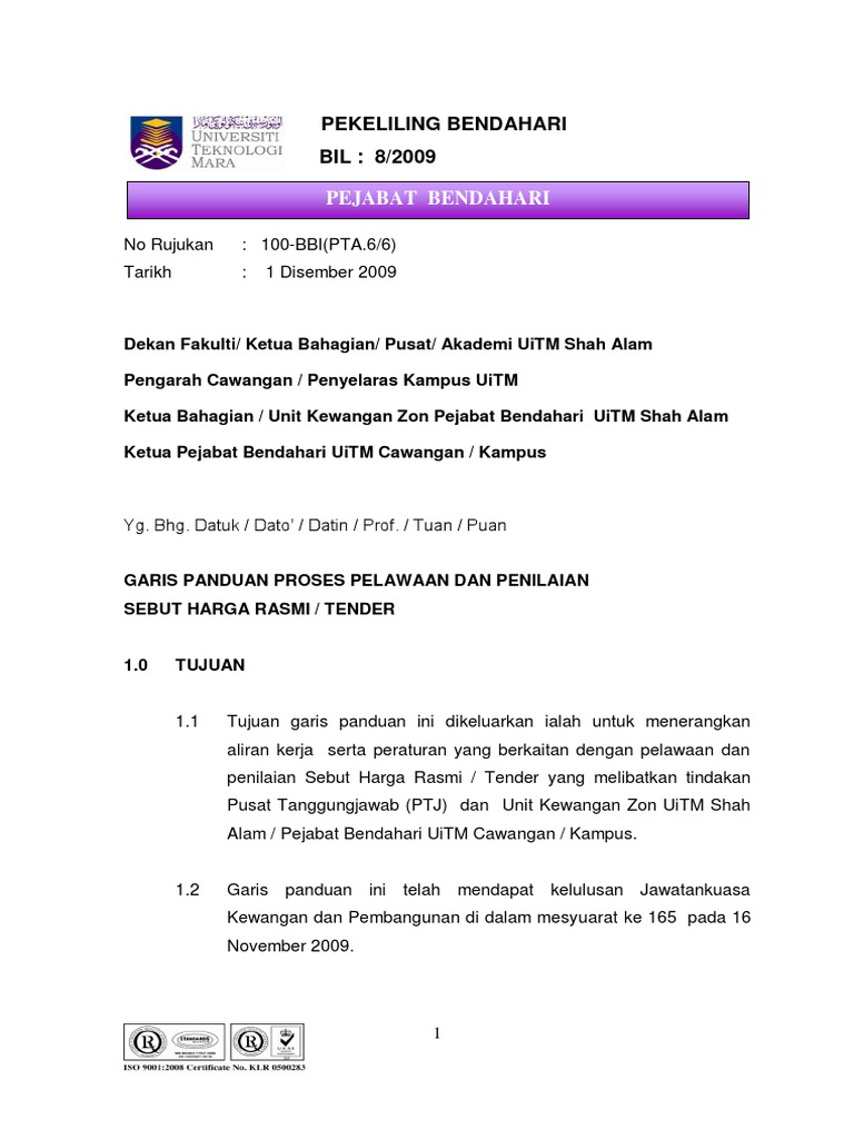 Garis panduan penyediaan folio profil nilam. Sebut harga yang paling menguntungkan kerajaan hendaklah disyorkan. Garis panduan pejabat tapak piawai jkr. Perolehan bekalan, perkhidmatan dan kerja yang melibatkan perbelanjaan tahunan atau sesuatu kontrak melebihi rm500,000.00 hendaklah dipelawa secara tender terbuka. Trend harga pembelian dalam urusan perolehan hendaklah diambil kira serta dijadikan sebagai panduan. Chp9 ukur kuantiti 09092009 handout 2 pages. Bagi semua agensi di bawah. Garis panduan ini bertujuan untuk menerangkan tentang pengurusan dan pengendalian aktiviti akademik dan penyelidikan di kampus pada dan selepas tempoh perintah kawalan pengerakan. Garis panduan ini memberikan panduan tentang metodologi pelaksanaan pemeriksaan dan penilaian bangunan, di mana ianya cukup ringkas untuk digunakan oleh pegawai dalaman jabatan kerja raya sepertimana yang termaktub dalam perintah am bab e klausa 27 yang menyatakan bahawa jkr. Tekan disini untuk menukar gambar. Kulit depan dan separator 2. Garis panduan penyediaan penyata perubahan. Penilaian juga dibuat ke atas tahap kesihatan terumbu karang serta ancaman di tapak selam tersebut.